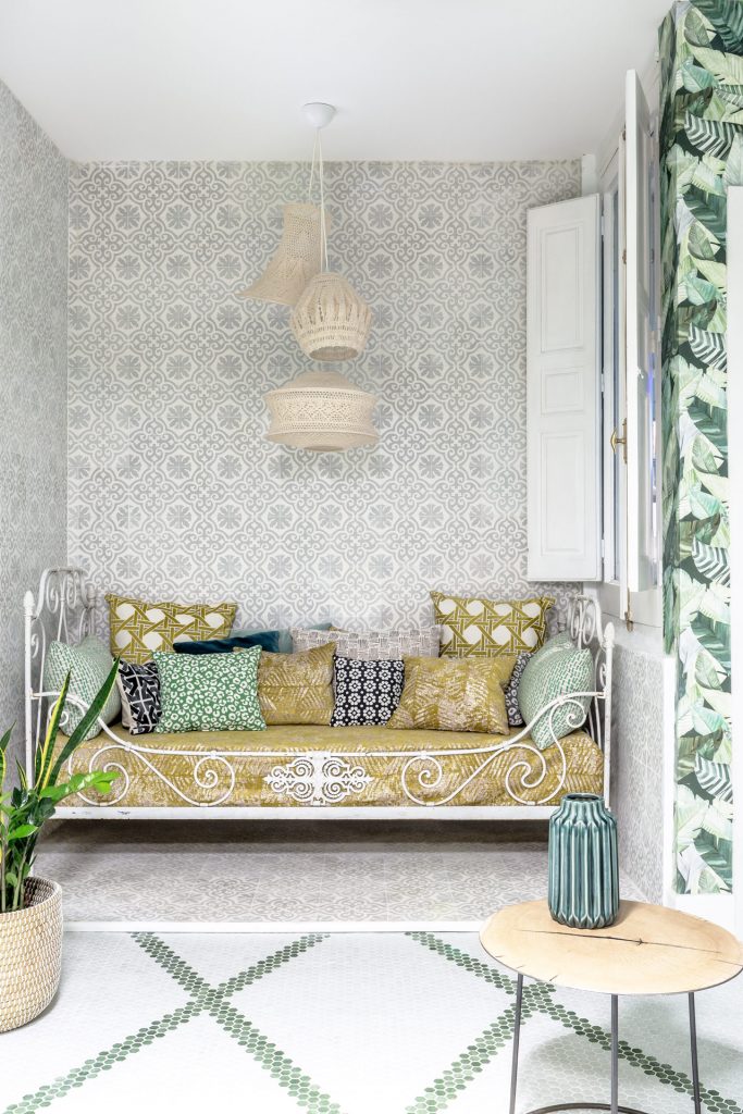 «Oasis» fue la propuesta de Decolook en Antonio Maura, 8. La pausa necesaria para el visitante a la exposición, una propuesta en verde con materiales reciclados y una alusión a la naturaleza en los papeles pintados.