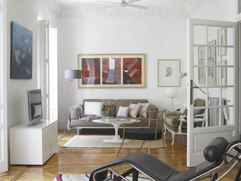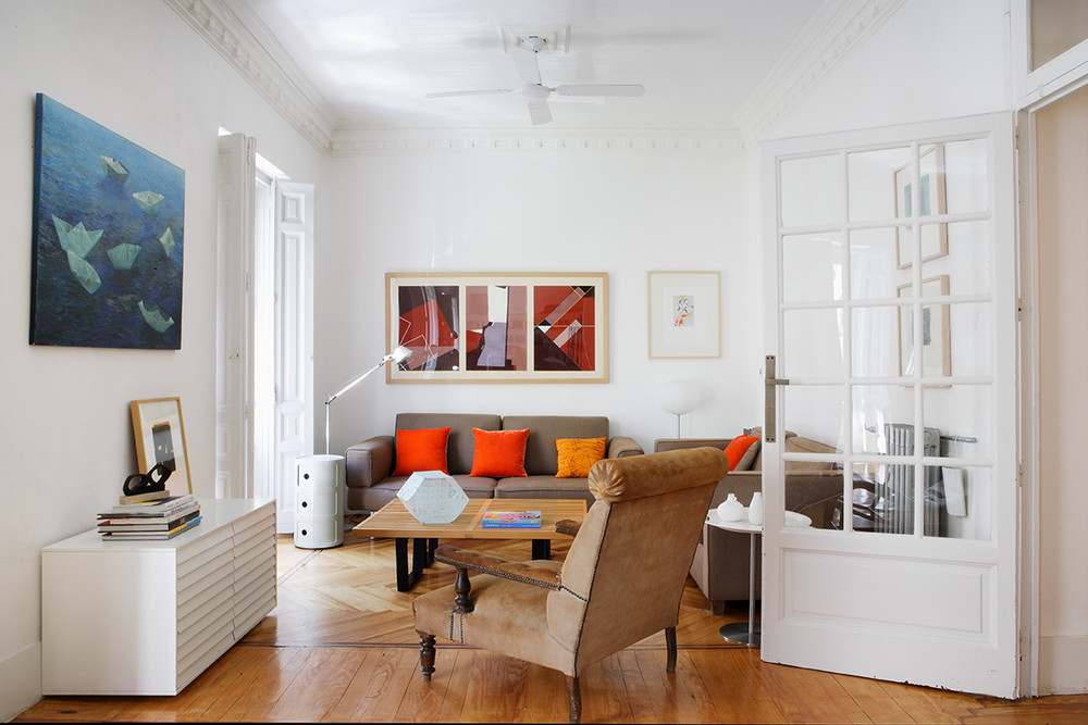 Piso familiar que se mantenía intacto desde 1930. Se hizo una reforma integral para adecuarlo a las necesidades de una familia con niños 80 años después….con una decoración ecléctica y muy personal, mezclando arte, diseño y piezas de almoneda. 150m2.